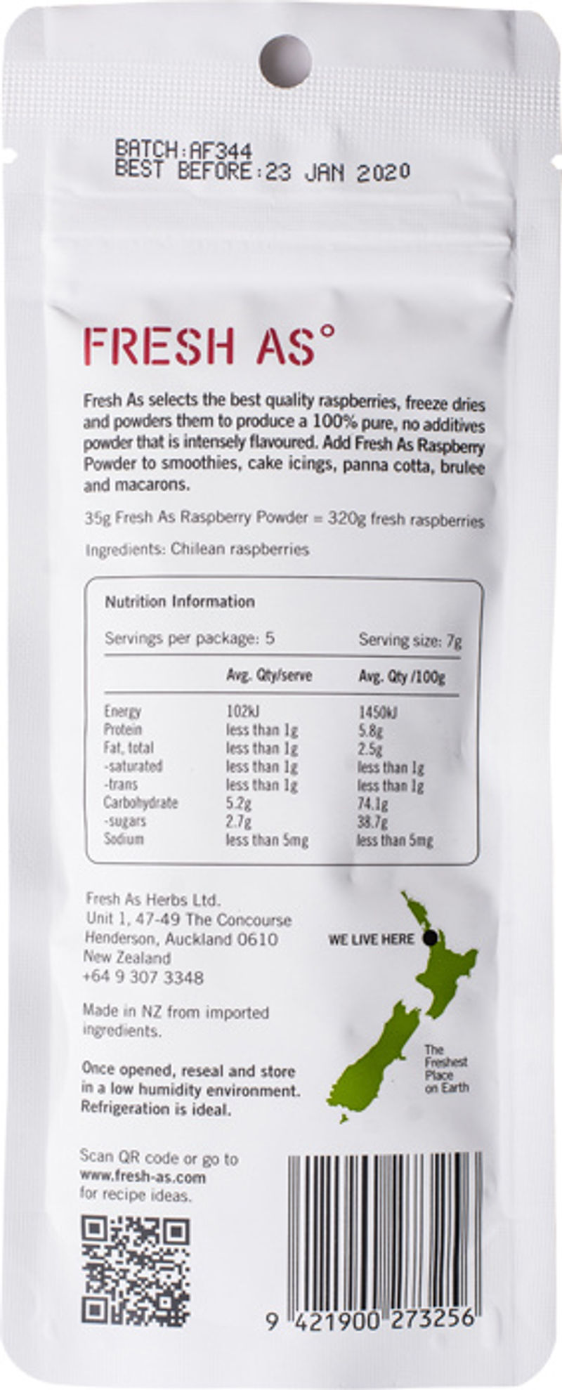 FREEZE DRIED RASPBERRY POWDER 35G (#66652) - 28 Oct 2027 is backordered and will ship as soon as it is back in stock.