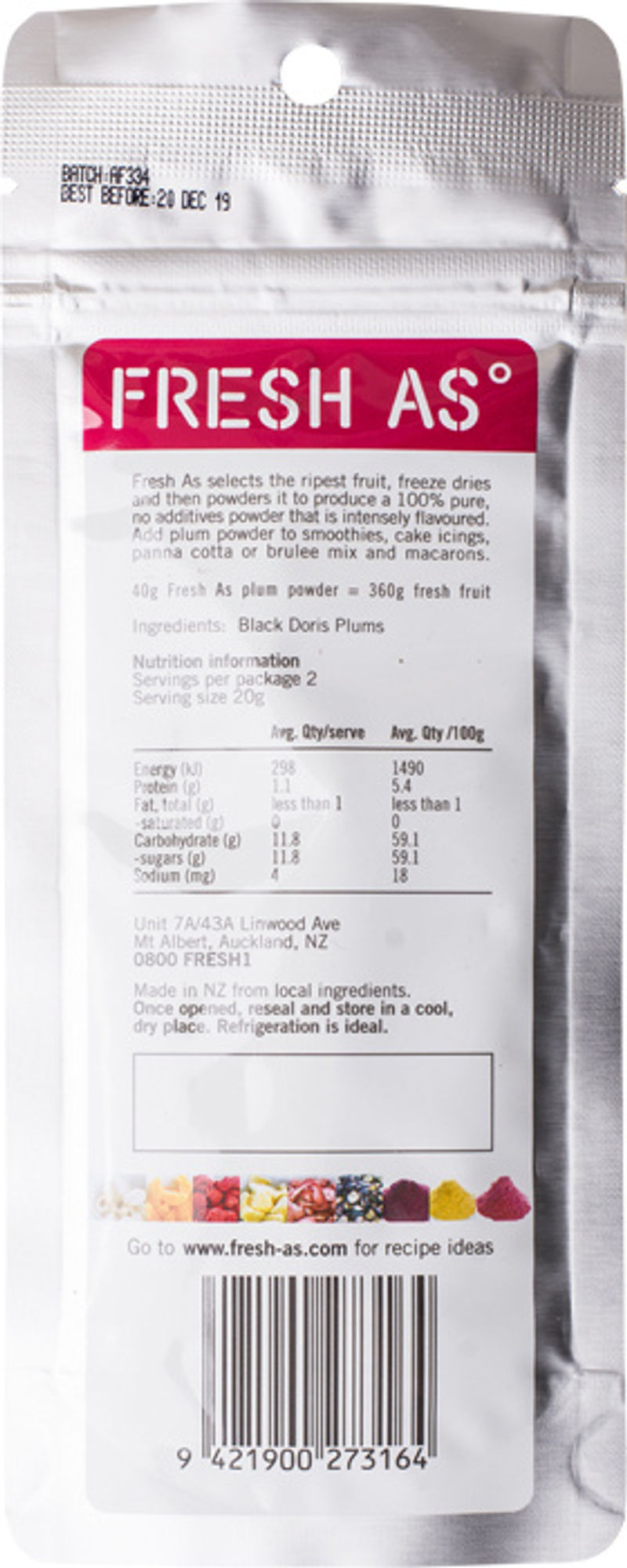 Experience the tangy and sweet taste of our Freeze Dried Plum Powder. This 40g packet is a concentration of natural plum flavors, with all the nutrients and health benefits intact, despite being freeze-dried. It's a versatile addition to your pantry, perfect for adding a fruity twist to your meals or beverages.