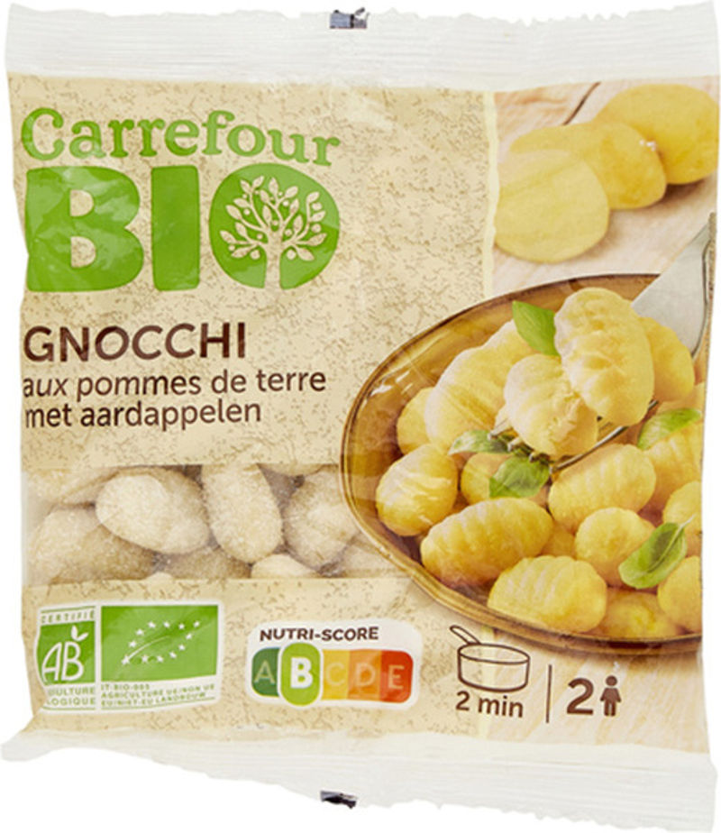 Carrefour's Organic Plain Gnocchi is a delicious choice for a quick and wholesome meal. Crafted from a blend of organic durum wheat semolina and dehydrated potato flakes, this fresh pasta delivers a delightful texture that's the perfect base for any sauce. Our gnocchi is seasoned with just the right amount of salt and is finished with a touch of organic rice flour for a subtly rich taste. Please note, this product may contain traces of soya.