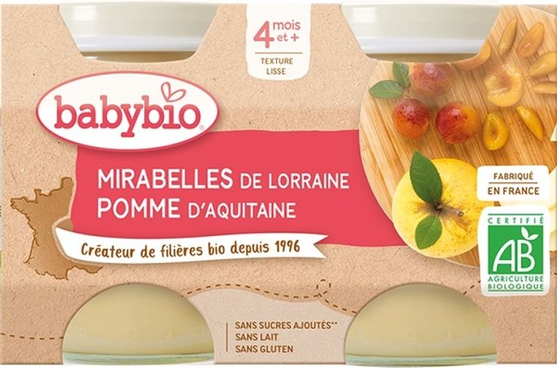 Introduce your little one to the world of flavors with Babybio's Organic Mirabelle Plum and Aquitaine Apples puree. Crafted with care and rich in essential nutrients, this puree serves as an ideal meal for your baby from 4 months onwards. Babybio's organic fruit puree features 50% Mirabelle de Lorraine PGI, a distinctively sweet plum from the Lorraine region of France, and 50% Aquitaine apples, known for their crisp, sweet taste. The puree is further enhanced with ascorbic acid to ensure your baby gets a healthy dose of antioxidants. Certified organic, the ingredients are free from harmful pesticides and artificial additives, promoting your baby's healthy growth and development.