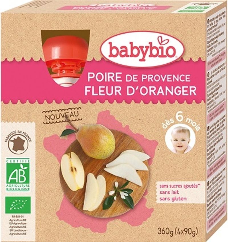 Experience the natural sweetness of Organic Provence Pear Orange Blossom for Babies by Babybio, designed specifically for your little ones. Made from 84% organic pears from Provence and 15% Aquitaine apples, this baby food is as wholesome as it is delicious. The addition of delicate orange blossom extract enhances the fruity flavor, providing a unique aroma that babies love. Babybio ensures the highest quality by sourcing ingredients from organic farming, bringing you a product that is free from synthetic pesticides and non-GMO.