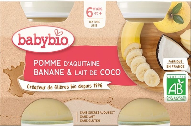 Introducing Babybio's Organic Aquitaine Apples, Banana and Coconut Milk blend for babies aged six months and above. This lush concoction is a natural feast of flavors and nutrients, carefully chosen to ensure your baby's healthy growth and development. The main ingredient, apples from the fertile region of Aquitaine, contributes to a wholesome sweetness balanced by the tropical creaminess of bananas from Ecuador and coconut milk from Sri Lanka. As a bonus, all ingredients are sourced from organic farming, guaranteeing your baby an introduction to clean eating right from the start.