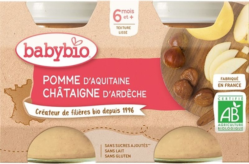ORGANIC APPLE ARDÈCHE CHESTNUT BABY PUREE 2X130G (#126714) - 3 Sept 2027 is backordered and will ship as soon as it is back in stock.