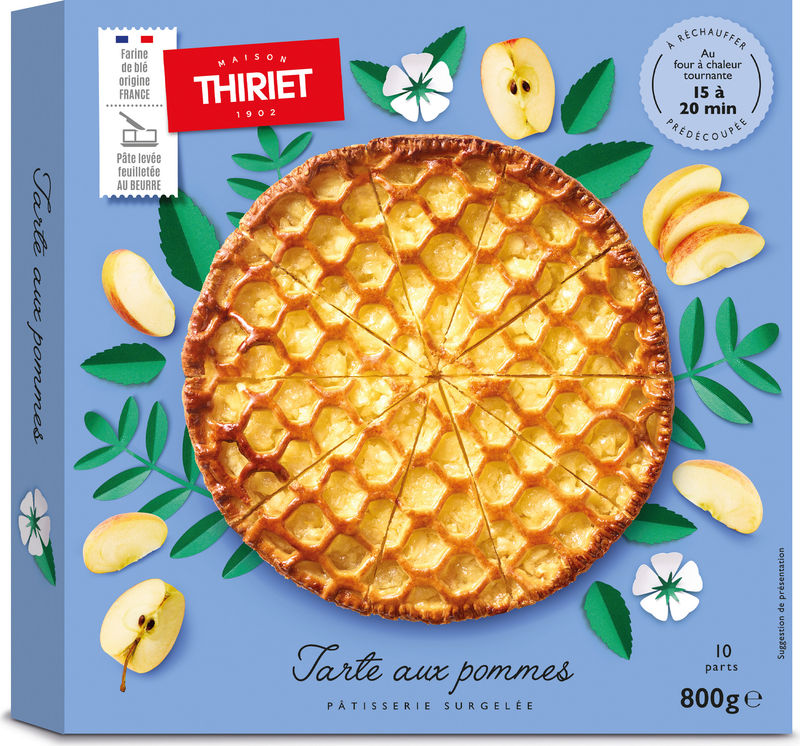 Indulge in the delightful taste of Maison Thiriet's Pre-Cut Apple Pie. A masterful blend of succulent apples at 47%, combined with premium wheat flour, sugar, and a pinch of special baker's yeast creates this traditional French delicacy. The pie also packs a punch of dairy richness with reconstituted whole milk powder, concentrated butter, and fresh eggs. With a hint of citric and ascorbic acid for a balanced taste, this frozen dessert is perfect for bringing a touch of French indulgence to your table.