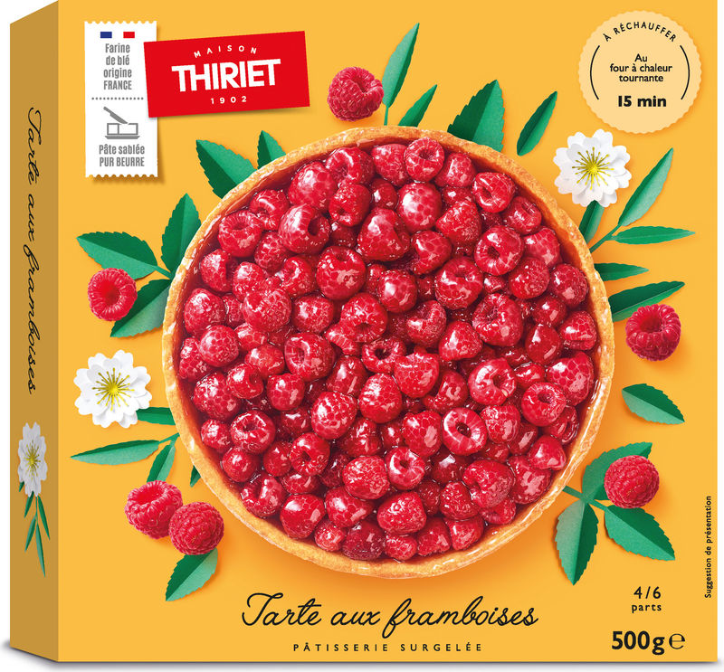 Delight in the scrumptious taste of Maison Thiriet's Raspberry Tart. This elegant frozen dessert combines the tartness of fresh, juicy raspberries with the sweet creaminess of butter. Made with French wheat flour and other premium ingredients, it offers an irresistible blend of flavors that will take your dessert experience to a whole new level. The addition of concentrated lemon juice provides a subtle citrus hint, balancing the sweetness while the glazed top adds an attractive shine, making it not only delicious but also visually appealing.
