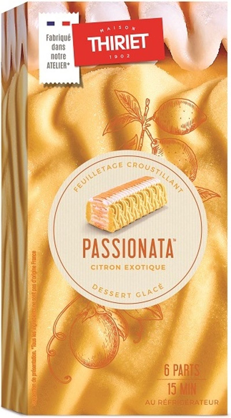 Experience a delightful tropical escape with the Passionata Exotic Lemon from Maison Thiriet. Made with a tropical blend of passion fruit and mango, complemented by refreshing lemon, this frozen dessert is the perfect way to end a meal or to enjoy as a midday treat. Its creamy texture, made possible by the coconut oil and skimmed milk powder, is sure to melt in your mouth, while the natural lemon flavor adds a zesty twist. Whether you're a fan of exotic fruits or just looking to try something new, this dessert will not disappoint.