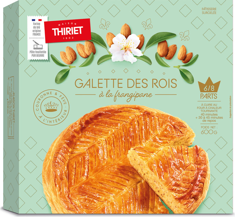 Indulge in the rich and delicious taste of a centuries-old French tradition with the French King Cake with Frangipani from Maison Thiriet. Crafted using the finest ingredients, this cake features a pure butter puff pastry layered with a sweet and aromatic almond cream known as frangipane. Each bite unveils a buttery and flaky texture, complemented by the nutty frangipane and a hint of rum for an exquisite finish. Sourced from France, the wheat flour adds an authentic touch to this frozen dessert. The delight doesn't end there though, each cake comes with a bean and crown, upholding the tradition of "finding the king," making this cake not just a treat but a delightful experience.
