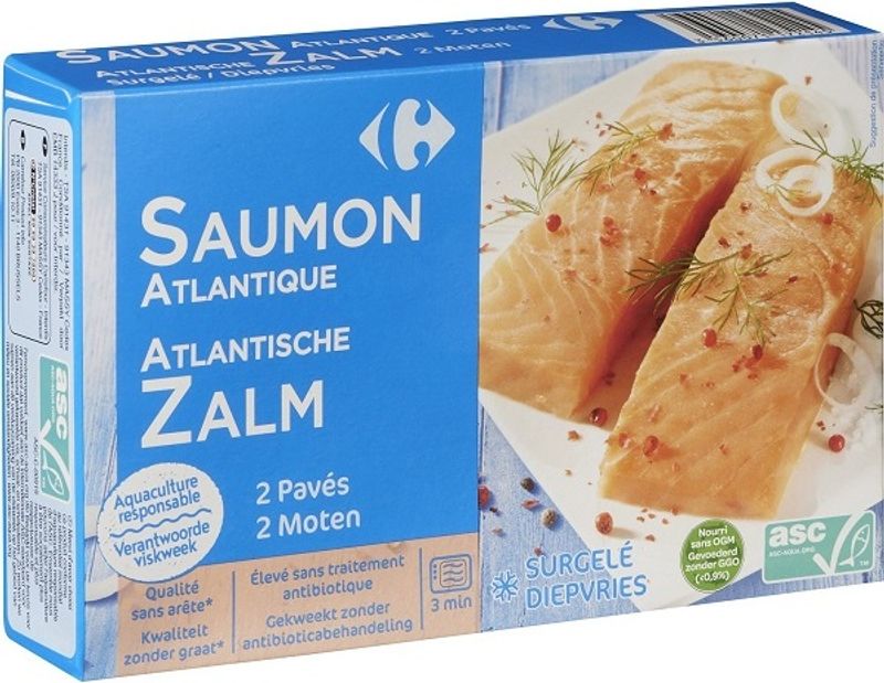 Savor the richness of the sea with Carrefour's Salmon Steaks. Sourced from the cold, clear waters of Chile, our Atlantic Salmon (Salmo Salar) is bred with utmost care to ensure you get a high-quality, succulent, and flavorful product. Our Salmon steaks are instantly frozen after being cut to lock in the fresh flavors and nutrients. A top-notch choice in our Frozen Fish and Seafood section, these salmon steaks are not only rich in Omega-3 fatty acids but also offer a good source of protein and Vitamin D - a perfect balance of taste and health!
