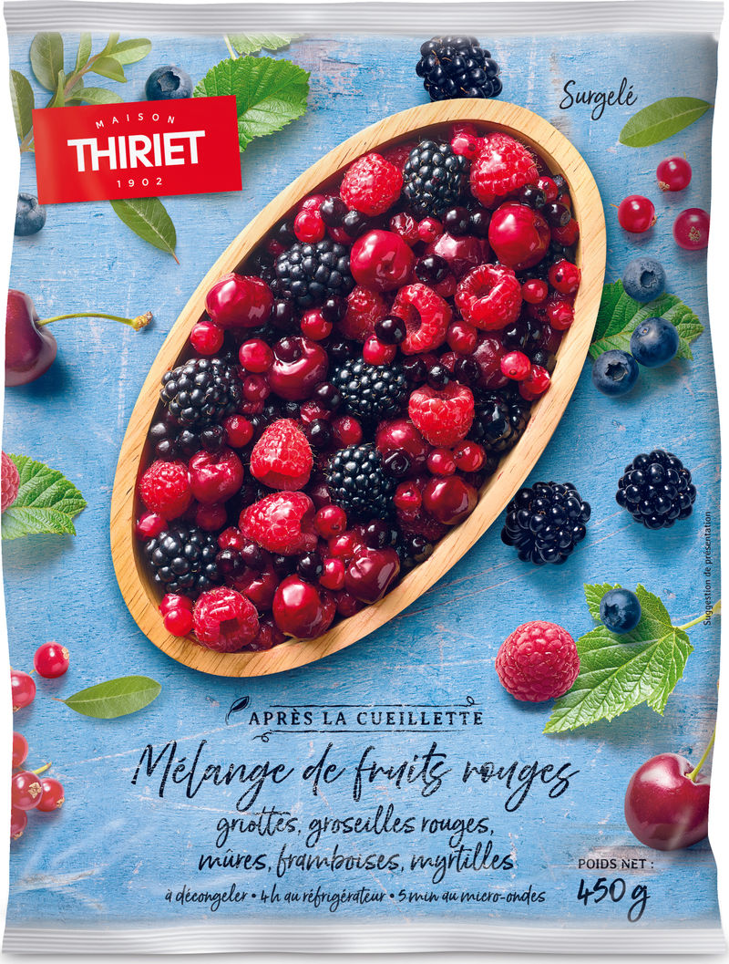 Experience the taste of summer all year round with Maison Thiriet's Mixed Berries. This delightful mix of morello cherries, red currants, blackberries, raspberries, and blueberries, each making up a fifth of the blend, is sourced from top-quality producers in Poland, Serbia, and Ukraine. Bursting with natural sweetness and vibrant flavors, these frozen fruits are a versatile addition to your pantry. They are perfect for desserts, breakfast dishes, and even savory meals, and their frozen state ensures you can enjoy their refreshing taste anytime, regardless of the season.