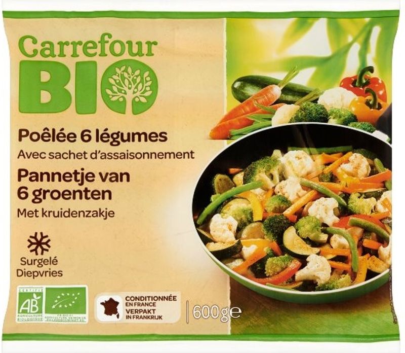 Introducing Carrefour's Organic Mixed Of 6 Veggies. A carefully crafted blend of organic vegetables, frozen at the peak of freshness to preserve their nutritional benefits and flavor. This bountiful combination of broccoli, cauliflower, zucchini, carrots, green beans and vibrant red and yellow peppers brings a vibrant burst of color and nourishment to your meals. Complemented with a savory sachet of organic spices and seasonings including curry, paprika, onion, black pepper, celery, and fennel, this tempting medley offers an effortless way to add a healthy and delicious twist to your dishes. With each vegetable constituting at least 4.8% of the mix, you can be assured of a balanced variety in every mouthful.