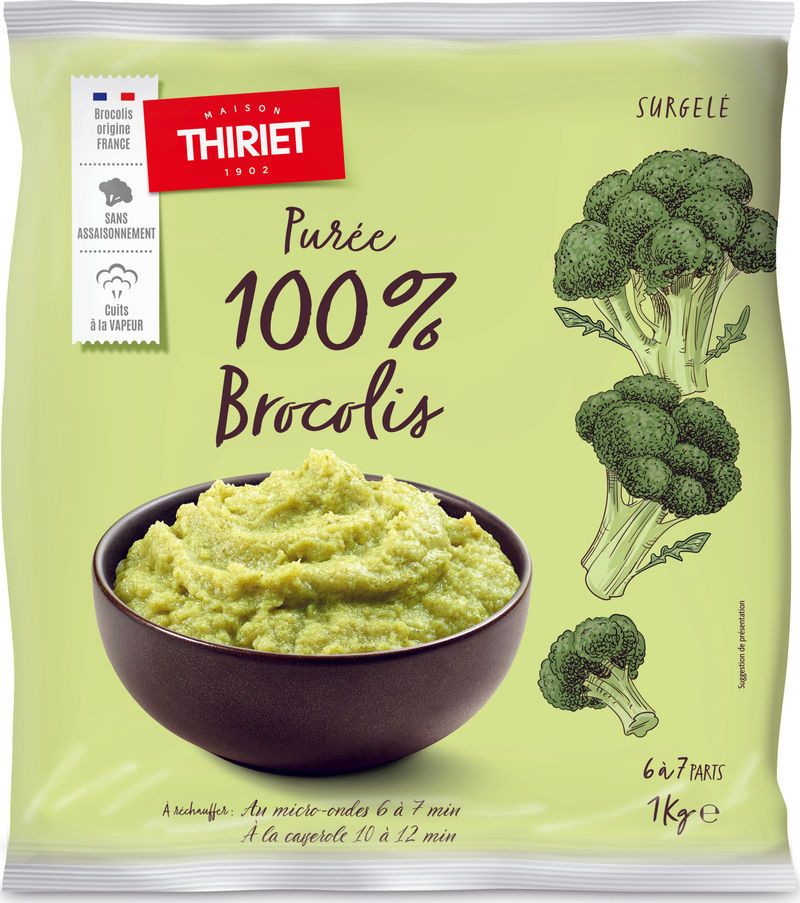 Savor the goodness of nature with Maison Thiriet's Broccoli Purée. Our purée is made from the finest steamed broccoli, sourced directly from France, promising an authentic and natural taste. Its unique texture and vibrant color have a way of enhancing any meal, making it not just delicious, but also visually appealing. As a part of our frozen vegetable and ready-to-eat meals range, it delivers both convenience and nutrition straight from our kitchen to yours.