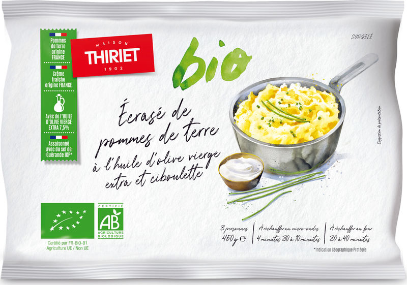 Indulge in the pure, farm-fresh flavors of Maison Thiriet’s Organic Mashed Potatoes with Olive Oil and Chives. Harvested from the rich soils of France, our potatoes are impeccably mashed and elegantly seasoned with extra virgin olive oil, fresh cream, and a hint of chives. The savory taste is perfectly balanced with a pinch of Guérande salt, a protected geographical indication product that adds depth and authenticity to this delicious meal. Made from 80.5% organic potatoes, this frozen dish promises to deliver premium quality and unmatched taste to your dining table.