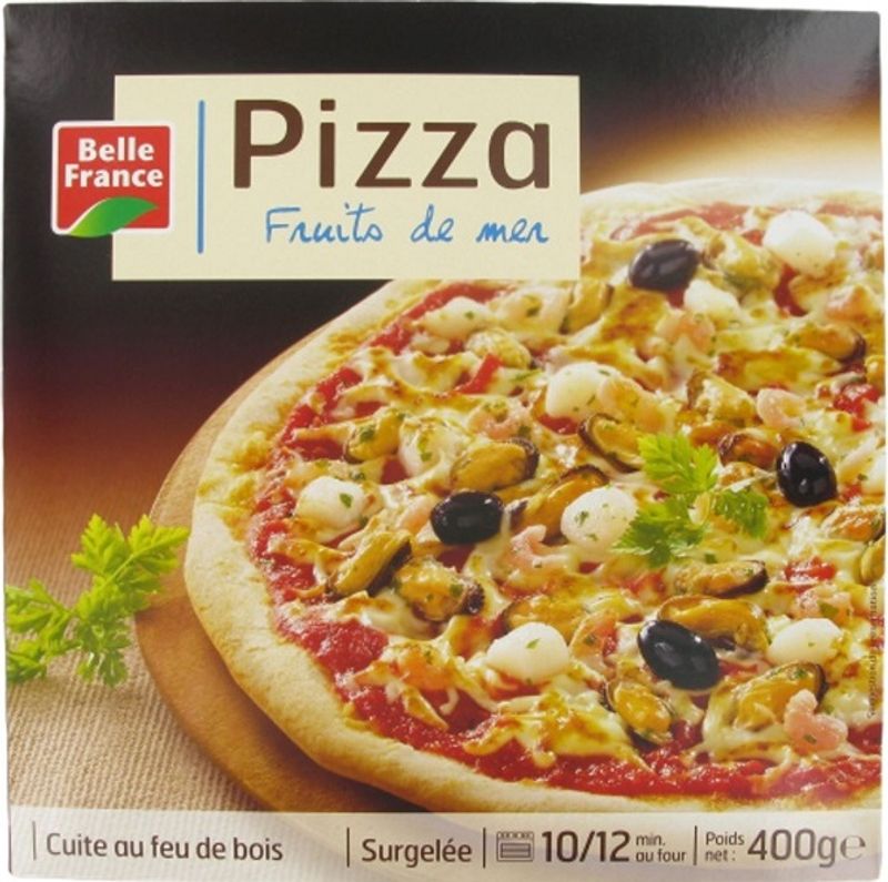Indulge in the sumptuous flavors of the Seafood Pizza from Belle France, a rich and delightful option from the heart of the French culinary world. The pizza is generously garnished with 52% tomato puree from Provence, a lush and tangy base that perfectly complements the 30% seafood mixture. This blend of Pacific mussels, peeled shrimp tails, and scallops without coral offers a delectable taste of the ocean. Emmental cheese, black olives, onions, garlic, and Provencal herbs lend a savory edge, while hints of extra virgin olive oil, sugar, and pepper create a balanced flavor profile. The pizza base, made from quality wheat flour and yeast, has a pleasing texture that ties it all together.
