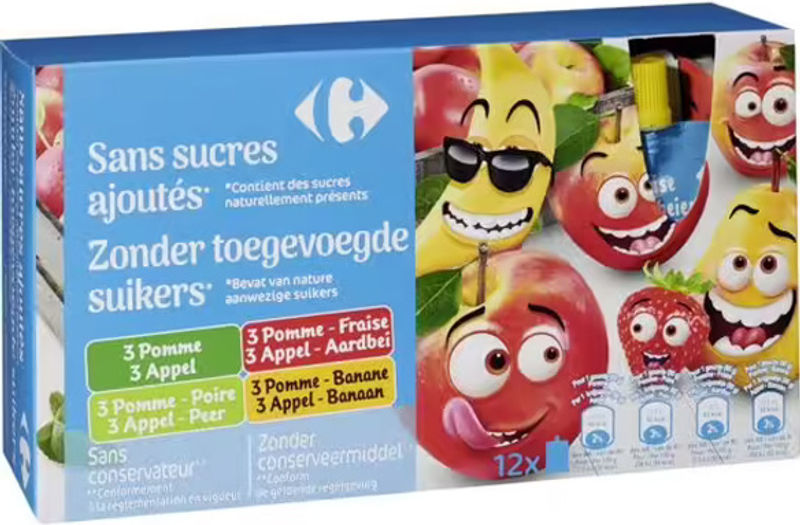 Indulge in the natural sweetness of Carrefour's Assorted Fruits Compote, a delightful blend of fresh fruit purees with no added sugar. Each pack contains a variety of flavors including apple, strawberry, banana, and pear that are carefully selected for their quality and taste. This compote is made with 99.9% real fruits, preserving the original taste and nutritional content of each fruit. It's an excellent source of vitamins, especially Vitamin C because of the added antioxidant ascorbic acid. Perfect for those who want a delicious and healthy treat.