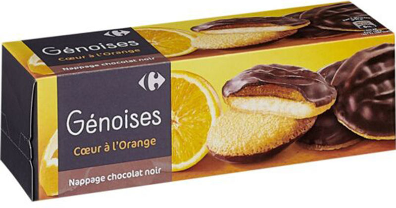 Glucose-Fructose Syrup, Sugar, Dark Chocolate 17% [Cocoa Mass, Sugar, Cocoa Butter, Emulsifier: Lecithin (322(I)) (Soya), Natural Vanilla Flavouring], Orange Juice From Concentrate 11%, Wheat Flour, Whole Eggs 6%, Palm Fat* 2%, Stabiliser: Sorbitols (420), Wheat Starch, Gelling Agent: Pectins, Acidifier: Citric Acid (330), Manioc Starch, Raising Agents: Ammonium Carbonates And Sodium Carbonates (500), Orange Peel Oil, Emulsifier: Mono And Diglycerides Of Fatty Acids, Acidity Regulator: Sodium Citrates (331), Salt. *Contains Certified Sustainable Palm Oil. May Contain Traces Of Nuts And Milk.