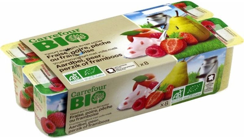Indulge in the exquisite taste of Carrefour's Organic Fruit Yoghurt, an invigorating blend of rich dairy and luscious fruit. Made with 76.6% whole milk and 10% real fruit like strawberry, peach, pear, or raspberry, this yoghurt offers a wholesome and nutritious treat. The yoghurt's natural sweetness comes from 9.9% cane sugar and is complemented by the subtle notes of elderberry and carrot juice. Enhanced with natural flavors and fortified with lactic ferments, this product promises not only a delicious, creamy experience but also contributes positively to your digestion and overall health.