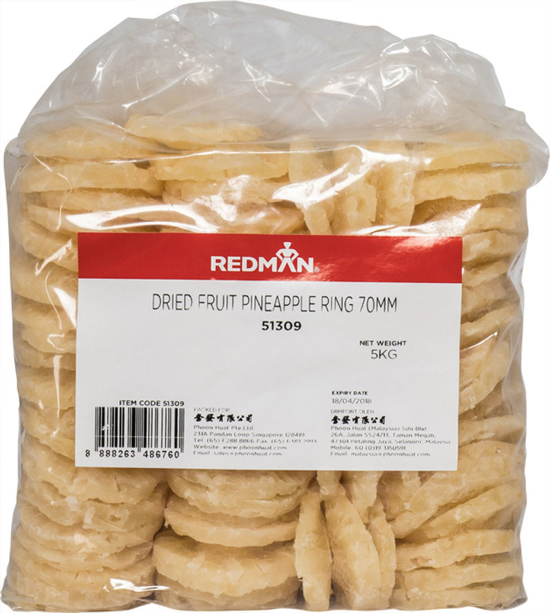 Enjoy the tropical sweetness of our 70mm dried pineapple rings. A healthy, natural snack, each 5KG pack is filled with the taste of sun-ripened pineapples sourced from the finest growers. They are dried to perfection, capturing a balance of sweetness and tartness, making them an excellent choice for those who appreciate healthy yet delicious snacks.
