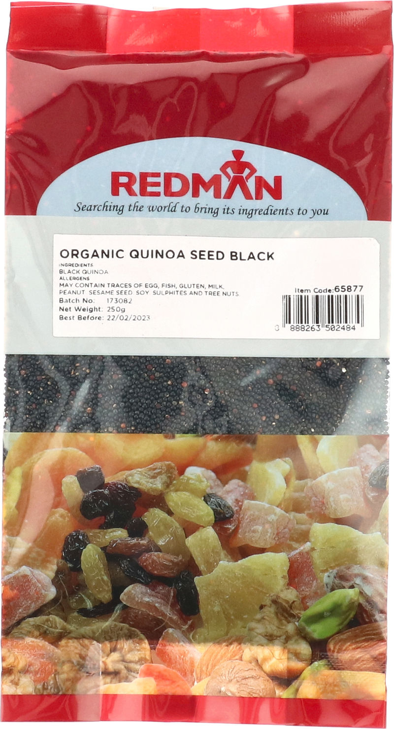 Dive into the world of nutrition with our Redman Black Organic Quinoa Seeds. Originating from the heart of Peru, these seeds boast an impressive nutritional profile, including high protein and fiber content. Providing a slightly crunchy texture and rich, nutty flavor, these versatile seeds can be incorporated into both sweet and savory dishes. Presented in a handy 250g pack, they offer a healthy alternative for those seeking to increase their intake of nutritious, plant-based proteins.
