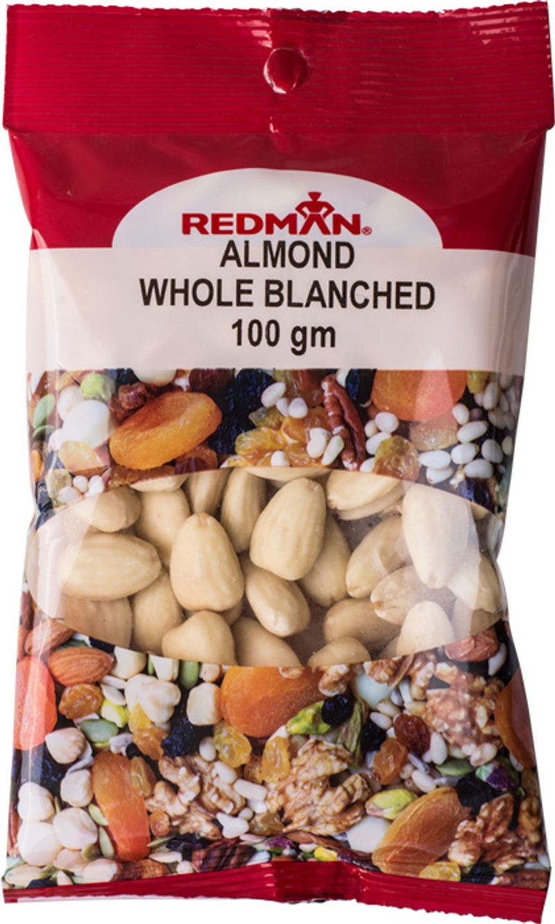Savour the rich, distinctive taste of our Redman Whole Almonds. Sourced from the finest almond farms in Australia and the UK, these nuts are blanched to perfection, removing their skins, while keeping their scrumptious flavor intact. Packed with a high dose of vitamin E, these whole almonds are not only delicious but also a powerhouse of antioxidants. Their crunchy texture and wholesome goodness make them an ideal snack, exuding a full-bodied almond flavor that is undeniably delectable. Available in 100g, 250g, and 1kg packs, you can choose the quantity that suits your needs.