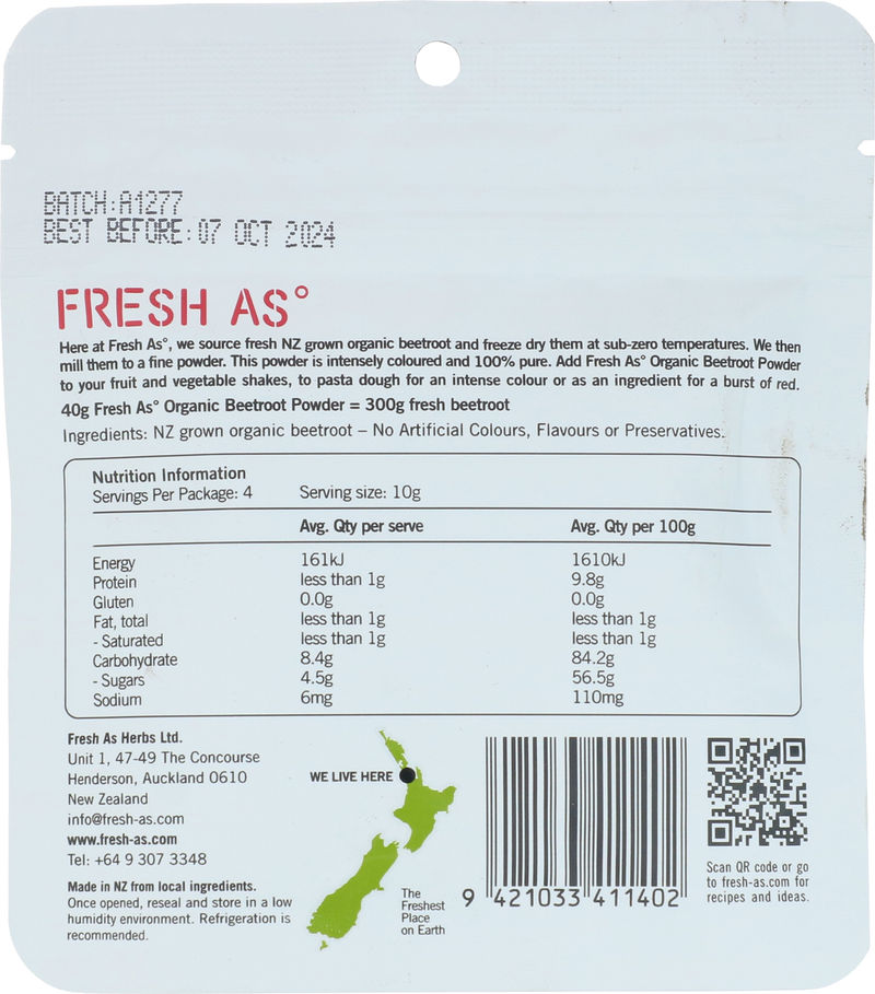 The FREEZE DRIED BEETROOT POWDER 40G is a superfood packed with vital nutrients and powerful antioxidants. Sourced directly from top quality beets, this freeze-dried powder offers the full flavor and nutritional value of fresh beetroots in a convenient, easy-to-use form. It's a perfect addition to your health-conscious kitchen, offering a boost of natural color and flavor to any dish.