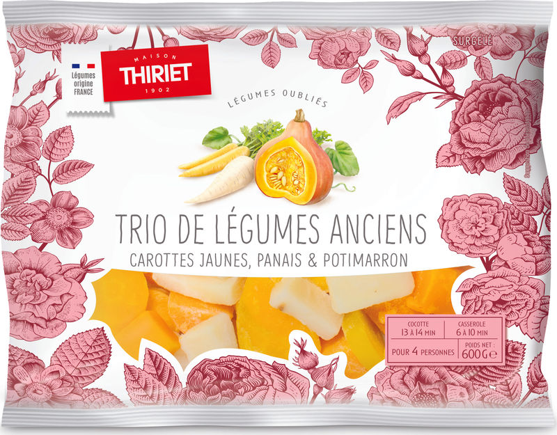 Discover the exquisite taste of the Old Vegetables Trio by Maison Thiriet, a delightful assortment of yellow carrot, parsnip, and pumpkin, each making up a significant portion of the mix. Sourced from the finest farms, these vegetables are harvested at their peak freshness, then snap-frozen to lock in their nutritional value and distinct flavors. This frozen vegetable pack is not only a convenient solution for healthy eating but also a perfect way to add a splash of color to your dishes, making every meal a feast for your eyes and taste buds.