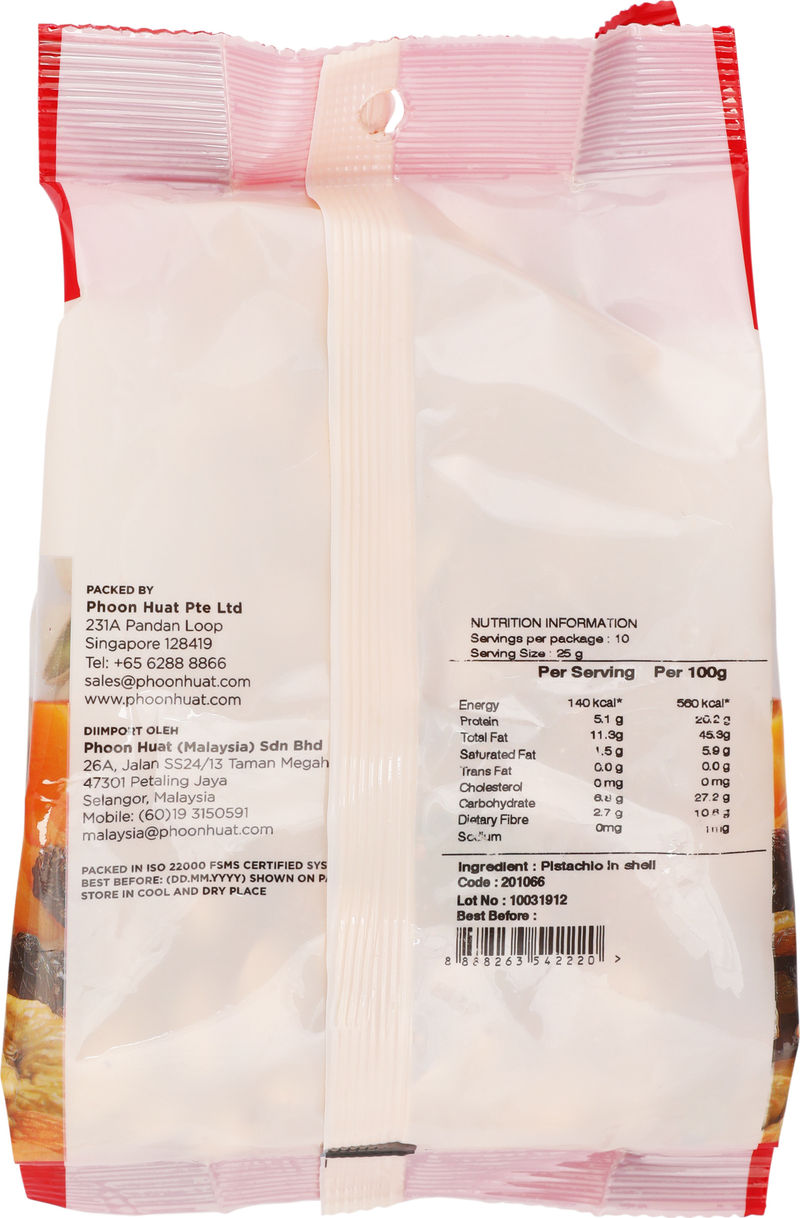 UNROASTED PISTACHIO IN SHELL 250G (#201066) - 28 Apr 2026 is backordered and will ship as soon as it is back in stock.