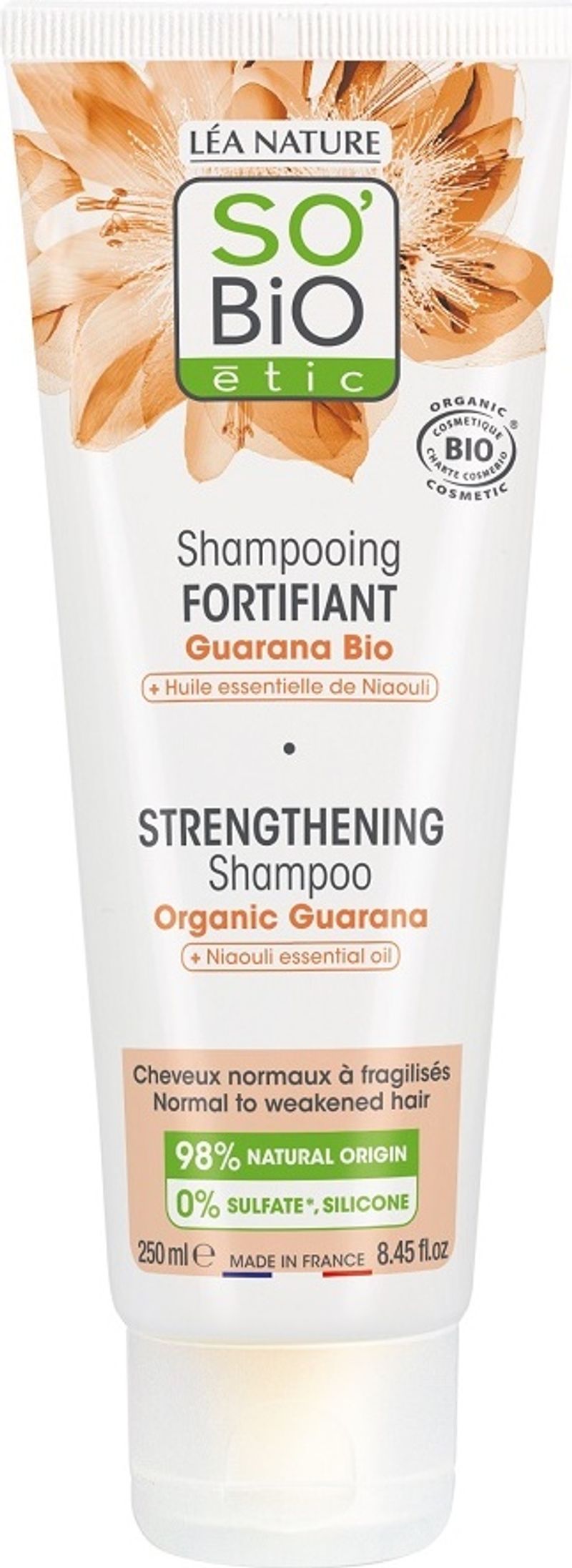 So’Bio Etic's Organic Guarana Fortified Hair Shampoo is an exceptional blend of organic ingredients that invigorates your hair with every wash. This French-made shampoo combines the stimulating properties of guarana seed extract and nourishing aloe vera, providing a gentle, yet thorough, cleanse that leaves your hair feeling revitalized and looking lustrous. Free of harsh sulfates, it's a gentle choice for everyday hair hygiene. Enriched with Melaleuca Viridiflora leaf oil, known for its invigorating scent and moisturizing properties, this shampoo leaves your hair smelling refreshingly natural.