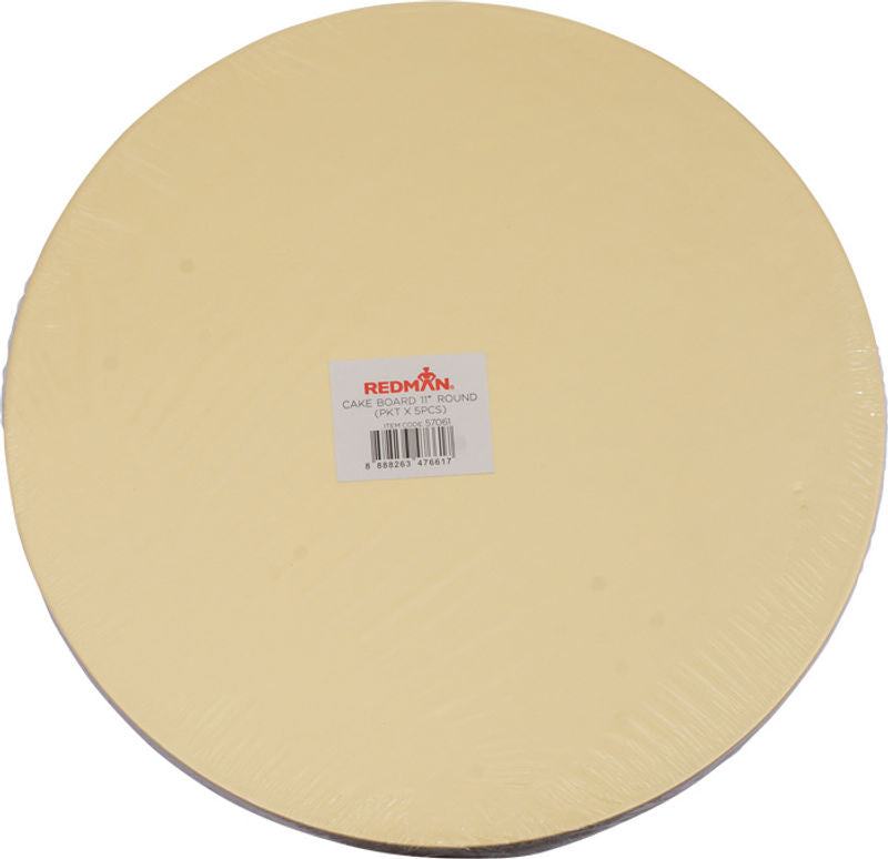 The CAKE BOARD 11" ROUND GOLD 5PCS are a set of sturdy, high-quality cake boards perfect for showcasing your baked masterpieces. Their shimmering gold finish adds a touch of elegance and sophistication to any event. Whether you're a professional baker or a home baking enthusiast, these cake boards will elevate your creations with their impressive look and feel.