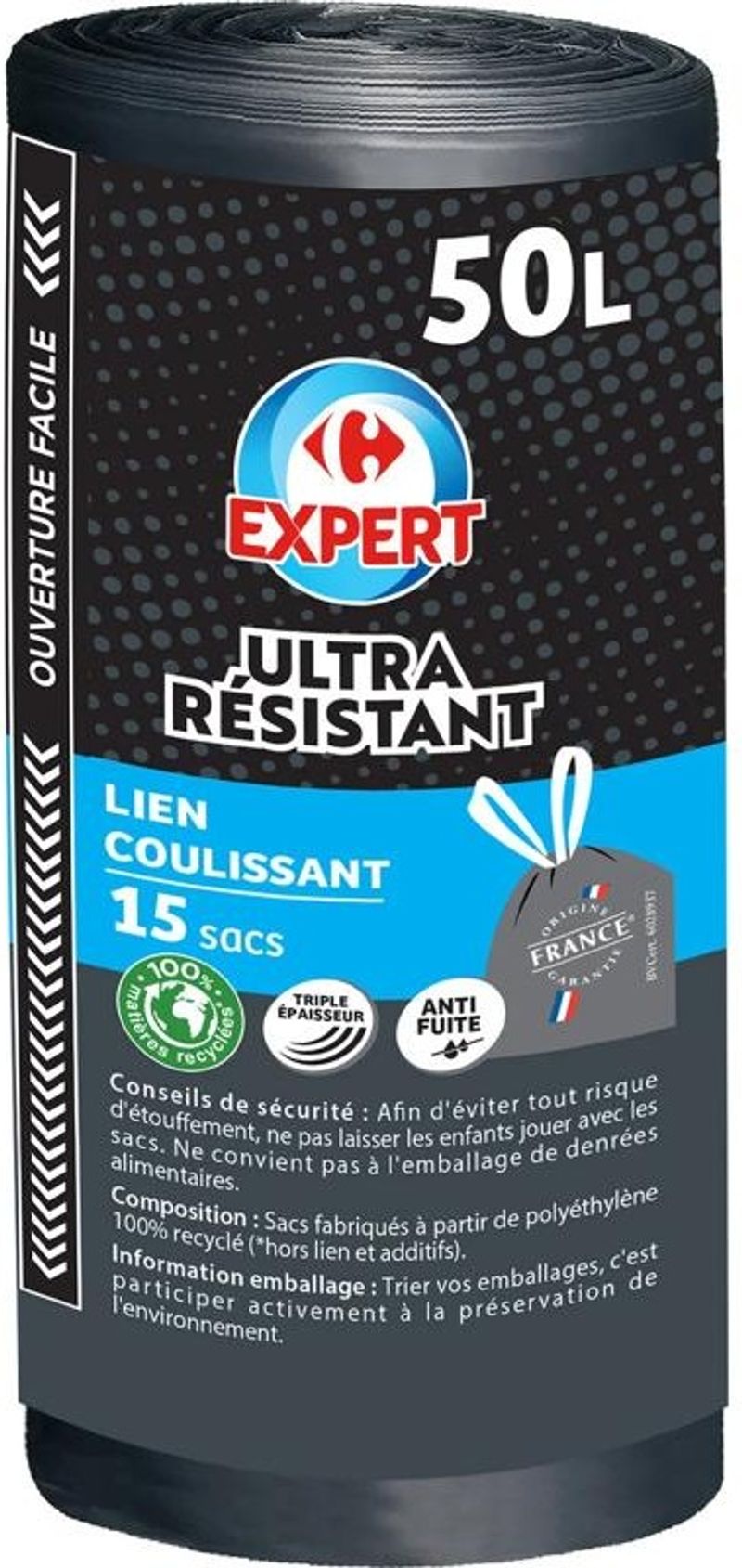 Keep your home clean, tidy, and eco-friendly with the Carrefour Standard Trash Bags 50L. Made from a blend of recycled and virgin polyethylene of vegetable origin, these bags are designed to be durable, reliable, and sustainable. They offer a generous 50-liter capacity to accommodate all your household waste needs. Whether it's kitchen scraps, bathroom refuse, or decluttering waste, these bags are up to the task. The eco-friendly nature of these bags means you can maintain your home's cleanliness while also being kind to the environment.
