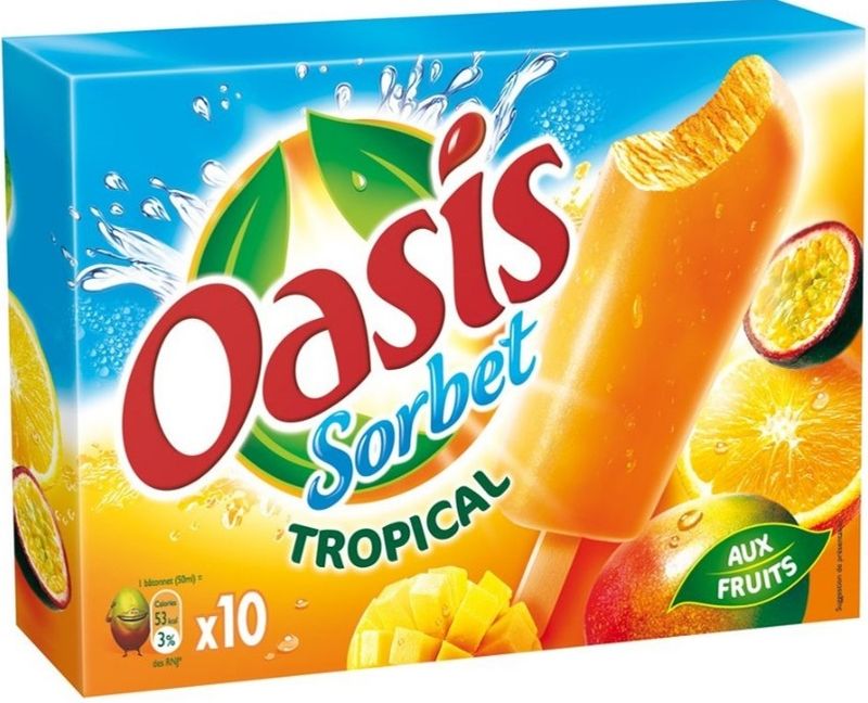 Indulge in the delights of our Oasis Tropical Sorbet, a refreshing and tantalizing frozen treat that will transport your taste buds to a tropical paradise. This carefully crafted sorbet blends a vibrant mix of fruit juices and purees, including orange, mango, guava, kiwi, papaya, apple, lemon, pineapple and passion, to create a symphony of exotic flavors. Made with water, sugar, glucose syrup and a medley of natural colorings, this sorbet boasts of low-fat content and a perfect balance of sweetness that is sure to satisfy your cravings.