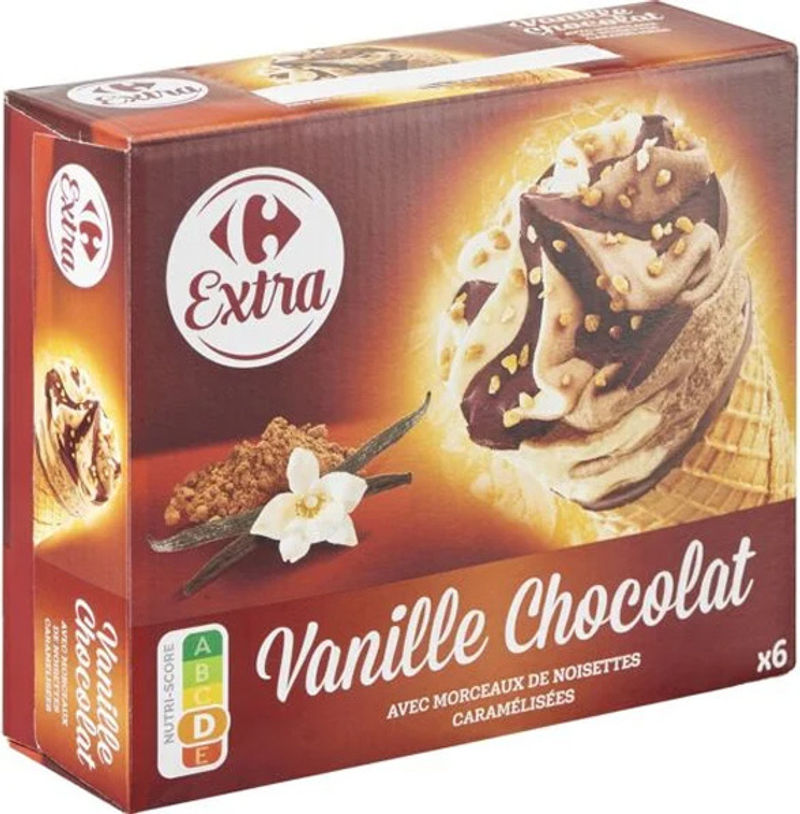 Indulge your taste buds with Carrefour's Vanilla Chocolate Ice Cream Cones, an irresistible blend of creamy vanilla and luscious chocolate ice cream in a crispy wafer cone. This divine treat is made using rehydrated skimmed milk, lactose, and milk proteins, creating a light yet indulgent experience. The vanilla ice cream contains natural flavors from real vanilla pods, while the chocolate ice cream is enriched with a generous amount of fine quality cocoa powder, bringing a perfect balance of sweetness and richness in every bite. The wafer cone adds a delightful crunch enhancing the overall experience. It's not just an ice cream cone; it's a journey of decadent flavors that you will surely love!