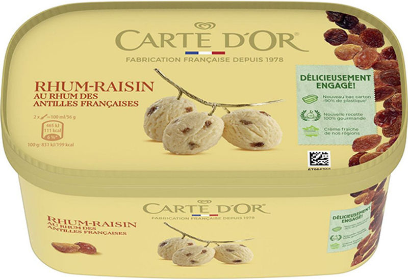 Indulge in the exquisite taste of Carte d’Or's Rum Raisin Ice Cream. This luxurious dessert is a blend of high-quality ingredients like rehydrated skimmed milk, cream, and raisins, with a hint of rum that adds an unexpected and delightful twist. The creamy texture, combined with the sweetness of the raisins and the unique flavor of rum, guarantees a truly delicious treat. Each scoop is a testament to the brand’s dedication to delivering superior taste and quality.
