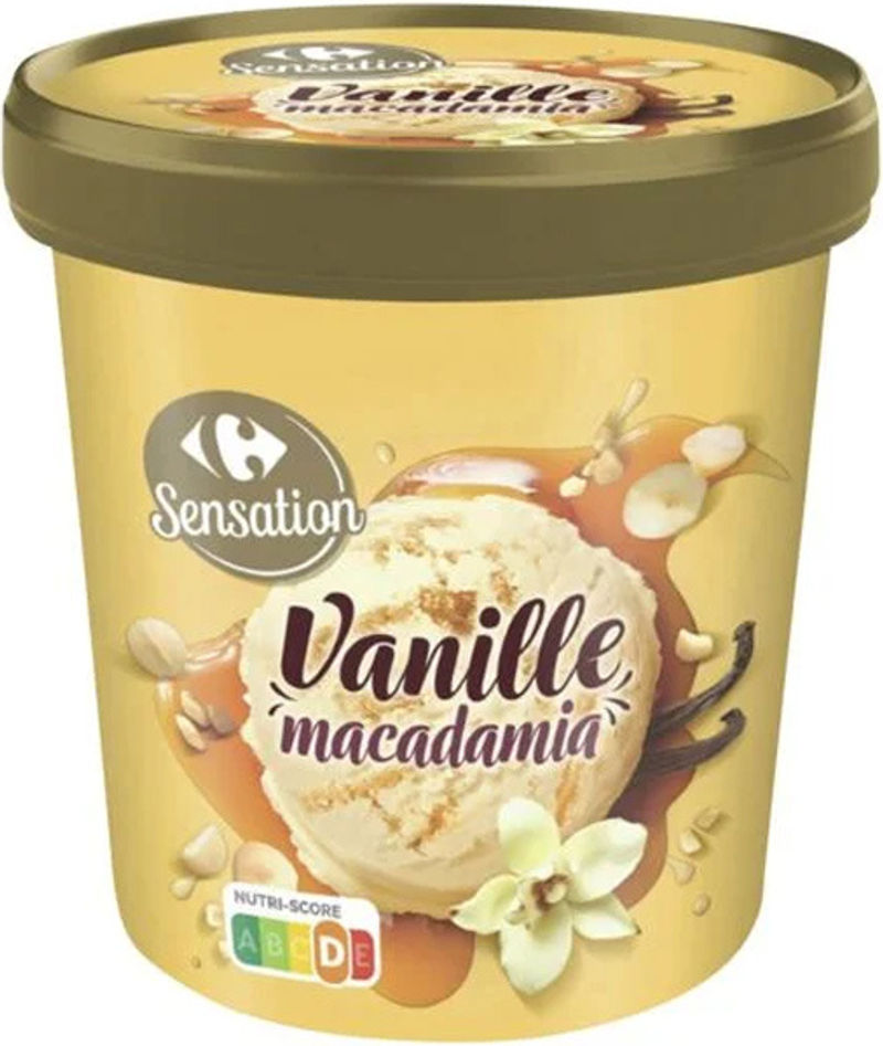 Indulge in the luxurious taste of Carrefour's Vanilla Macadamia Ice Cream. This divine frozen delicacy is a blend of creamy vanilla flavored ice cream with a hint of salted butter caramel and a generous sprinkling of caramelized macadamia nuts. Made with the finest natural ingredients, such as sweetened condensed milk, skimmed milk powder, and real egg yolk, it promises a rich and creamy experience that you won't soon forget. This ice cream is more than just a dessert, it's an indulgence that caters to the tastes of the discerning ice cream lover.