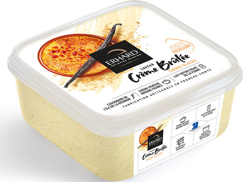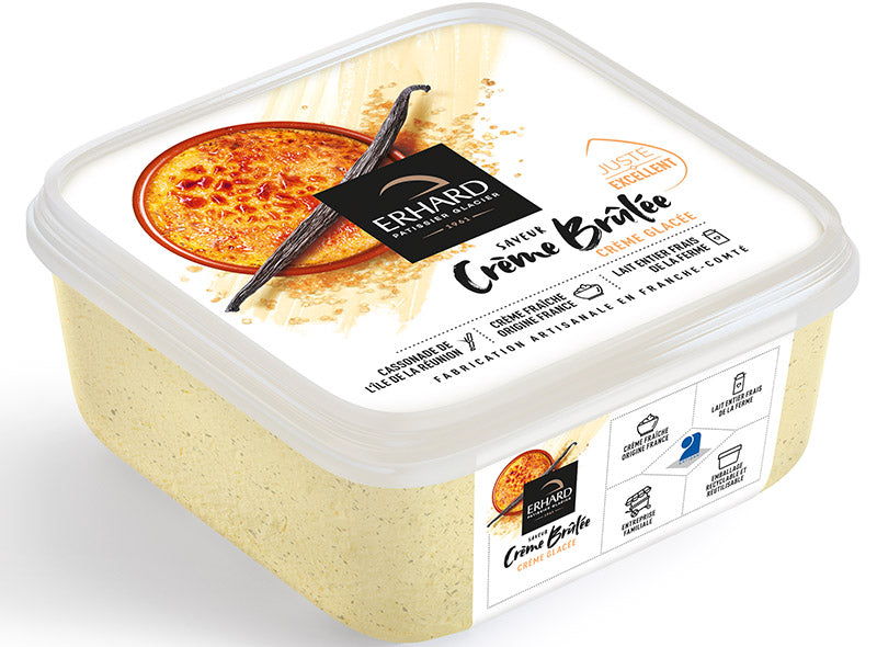 Indulge in the luxurious flavors of France with our Erhard Crème Brûlée Ice Cream. Expertly crafted using 48% farm fresh pasteurized milk, 16% fresh cream, and with a sweet hint of brown sugar, this ice cream is a creamy delight that perfectly encapsulates the essence of the classic French dessert. Our recipe even includes natural flavorings and a subtle hint of vanilla bean powder to enhance the taste. For those with dietary restrictions, please note this product may contain traces of nuts, soy, horses, and sesame.