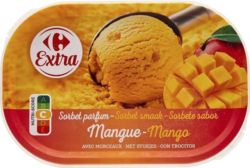 Experience the exotic with Carrefour's Mango Flavoured Sorbet. This frozen delight is the perfect treat to help you cool down during those warm summer days. With every spoonful, you'll savour an intense burst of tropical mango flavor, interspersed with refreshing bits of real mango cubes, making it a true celebration of this luscious fruit. The addition of concentrated lemon juice adds a hint of tang, balancing the sweetness and enhancing the natural mango flavor.