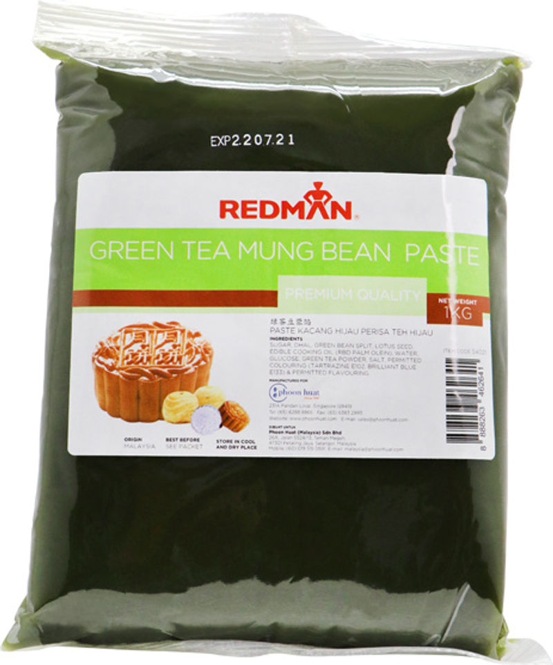 This 1kg pack of MOONCAKE PASTE GREEN TEA MUNG BEAN is a delightful delicacy from Malaysia by the Redman brand. The product is a blend of mung bean filling with the flavorsome undertones of green tea. Crafted with ingredients like Lotus Seed, Sugar, Peanut Cooking Oil, Trehalose, and Water, this paste carries a rich taste and smooth texture that will elevate your culinary creations. Perfect for those who seek a unique and exotic touch in their baked goods.
