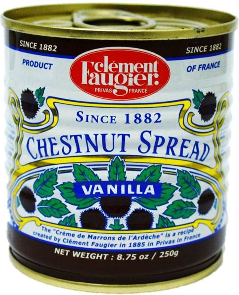 The Canned Vanilla Chestnut Spread by Clément Faugier is a decadent, gourmet delight that's sure to satisfy your sweet cravings. Crafted in France, this indulgent spread is made with real chestnuts, notes of vanilla, and premium ingredients like sugar, corn syrup, and chestnut debris. It's a unique twist on traditional jams and spreads, blending the rich, earthy flavors of chestnut with the sweetly aromatic allure of vanilla. This spread is perfect for those who enjoy experimenting with unique flavor combinations and relish the taste of high-quality French cuisine.