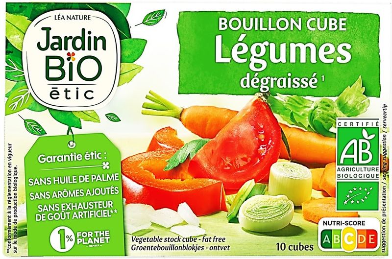 Jardin Bio's Fat-Skimmed Vegetable Bouillon Cube is a treasure trove of flavor that has been carefully crafted to enhance your culinary creations. Made with a delightful blend of real, organic vegetables such as onions, carrots, leeks, tomatoes, red peppers, and celery, this bouillon cube is an ideal solution for infusing your dishes with a rich, garden-fresh taste. Free from artificial preservatives, it's also fat-skimmed, making it a healthier alternative for your recipes. The bouillon cube dissolves easily, delivering a burst of savory flavor that will elevate your dishes to new gastronomic heights.