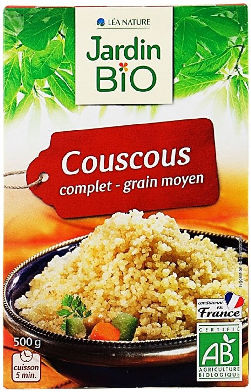 Introducing the Full and Medium Grain Couscous from Jardin Bio, a premium selection that promises a taste of France in every bite. Crafted from whole durum wheat semolina sourced from organic farming, this couscous offers a robust meal option that is not only wholesome but also delicious. A great source of dietary fiber and protein, the couscous is perfect for health-conscious individuals who don't want to compromise on taste. It's a versatile ingredient that can be used to create a wide array of dishes, from salads and soups to main courses.