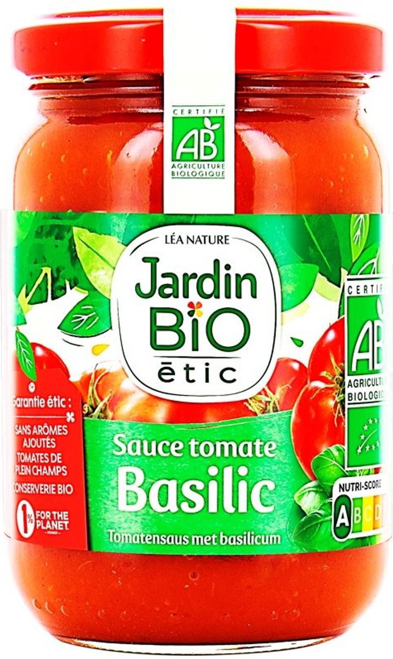 Indulge in the richness and authenticity of French cooking with Jardin Bio's Tomato Sauce with Basil. This premium condiment is made with 80% tomatoes, expertly blended with basil, onions, garlic puree, and a dash of sea salt for that perfect balance of flavors. The addition of extra virgin olive oil and sunflower oil enhances the rich taste, while a touch of raw cane sugar adds a subtle sweetness. Certified organic, this tomato sauce is a wholesome choice for those committed to a healthier lifestyle, offering a delicious and convenient way to incorporate the vibrant tastes of the French countryside into your meals.