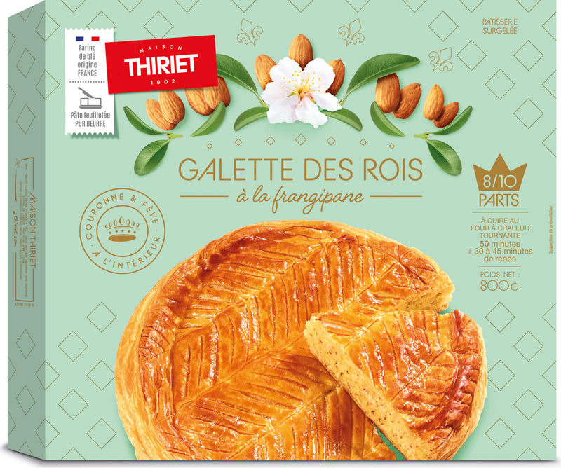 Celebrate any special occasion with Maison Thiriet's King Cake Frangipane, a delicious treat straight from France. This mouth-watering dessert is made with 65.4% puff pastry, prepared using high-quality wheat flour and butter, seasoned with a pinch of salt. Nestled within the flaky layers of puff pastry is a delightful zest of almond powder and sugar frosting that gives a sweet surprise with every bite. The dessert comes with a hint of butter and creamy whipping cream, an addition of rum for that extra kick of flavor, making it a perfect choice for holiday gatherings or weekend indulgence.