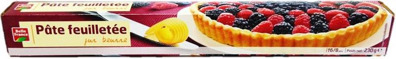 Indulge your culinary creativity with Belle France's Puff Pastry Dough, a top-quality product from our Deli category meant to make your baking experience smooth and enjoyable. This pastry dough is expertly crafted from top-notch ingredients, including wheat flour, refreshing lemon juice concentrate, and a generous amount of butter concentrate, adding a rich, buttery flavor that is sure to impress. Alongside its impressive taste, it possesses a delightfully flaky texture. It also contains a hint of citrus fiber for a light, unique touch. Please note that while it is mostly allergen-free, it may contain traces of egg.