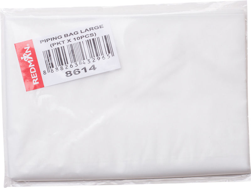 Add a professional touch to your baking with the "DISPOSABLE PIPING BAG LARGE 18" 10PC". These large, 18-inch bags are perfect for icing large cakes, piping meringues, or filling doughnuts with ease. Each pack contains 10 disposable bags, making clean-up a breeze. Ideal for both professional bakers and home enthusiasts, these piping bags offer convenience and precision in one package.