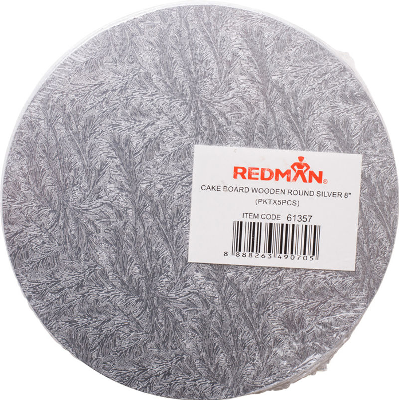 WOODEN CAKEBOARD RD SILVER 8" 5PCS