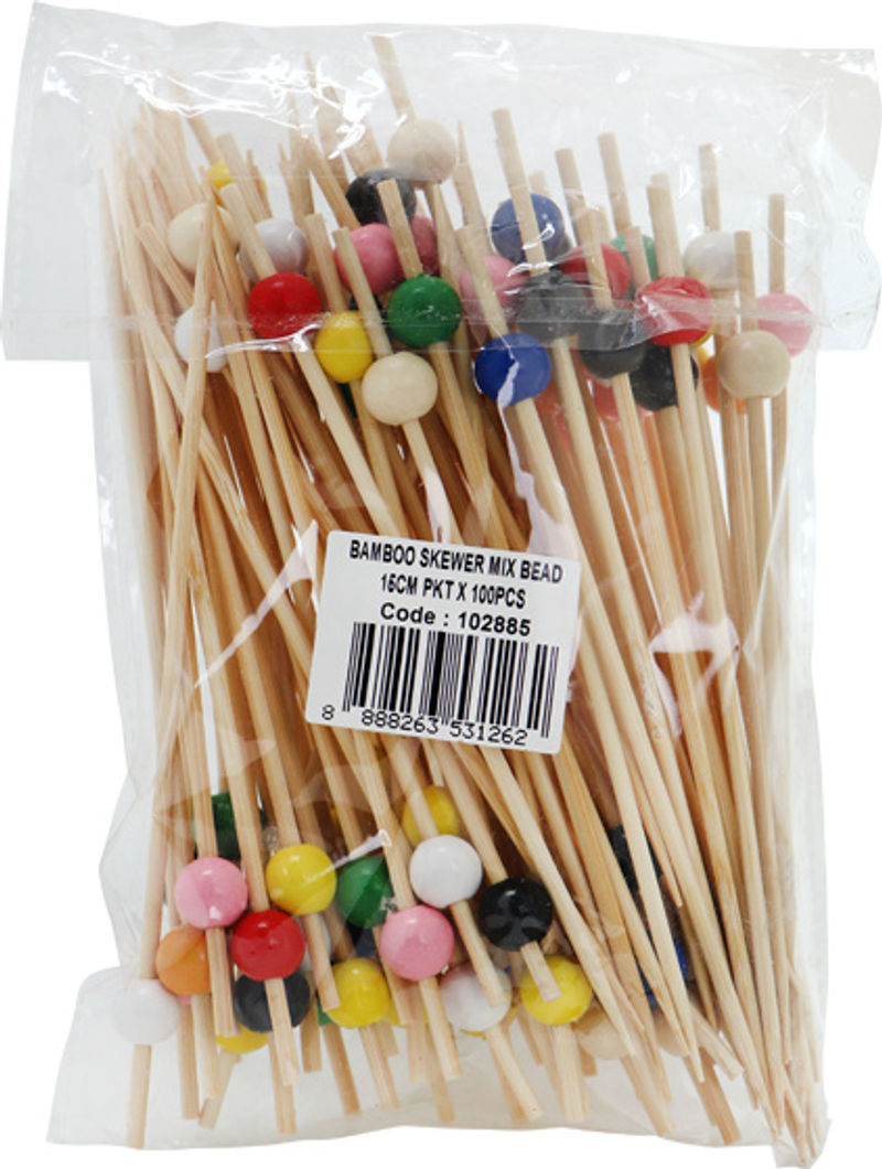 BAMBOO SKEWER MIX BEAD 15CM 100PC