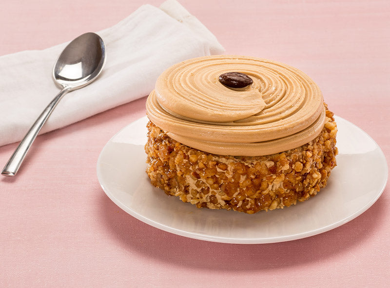 Wake up to the rich, comforting taste of La Pâtisserie's Coffee Mocha. This decadent treat is a combination of buttery coffee cream, fluffy sponge cake, coffee syrup, and praline hazelnut beans, all topped off with a coffee bean in a luscious coating of chocolate. This delightful dessert is more than just a pastry – it’s a taste sensation with a perfect balance of bittersweet coffee and smooth, creamy textures. The Coffee Mocha is made with premium ingredients ensuring quality and taste that will make your coffee breaks or dessert times feel like a Parisian getaway.