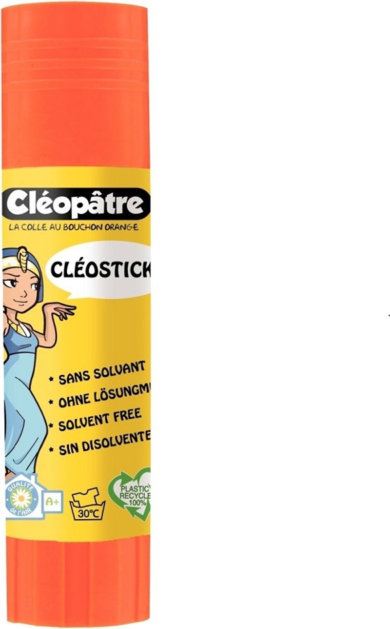 Enhance your crafting experience with our Cleopatre Solvent-Free Glue Stick. Made with a hard paste formulation, this 21g CléoStick glue stick ensures no crushing occurs, making it ideal for intensive use. Perfect for adhering paper, this glue stick is a must-have for any home or office stationery collection. Carefully designed with a tight cap, this glue stick guarantees better storage and longevity. Environmentally friendly and safe, it is 100% solvent-free and water-based. Plus, it's non-staining, which means there's no need to worry about any potential mess. Manufactured using 90% recycled and recyclable plastic, this glue stick is as kind to the planet as it is effective!