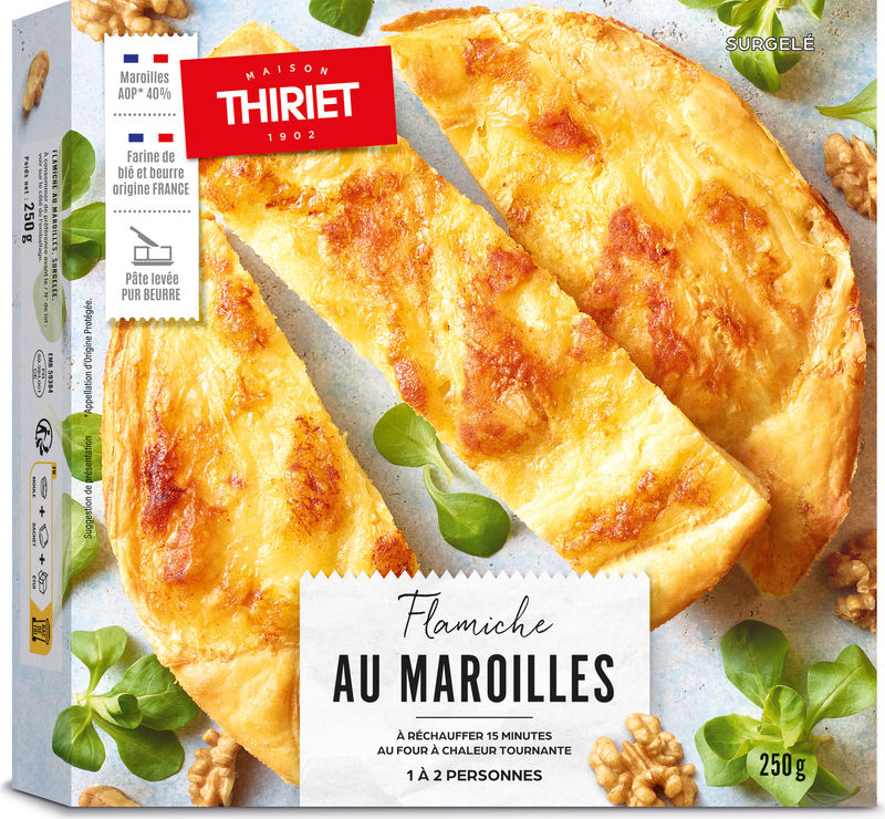 Indulge in the authentic French flavors of Maison Thiriet's Flamiche With Maroilles. This exquisite gourmet delight brings to your plate the rich, creamy taste of Maroilles PDO cheese, a specialty from the north of France, expertly blended with ingredients like high-quality wheat flour, butter, egg, and sour cream. Encased in a delicate, flaky crust, every bite is a harmonious blend of creamy flavors and buttery textures. The Maroilles cheese, the star of this dish, carries the Protected designation of origin, ensuring its authenticity and quality. Perfectly frozen to lock in freshness, this is a treat not to be missed.