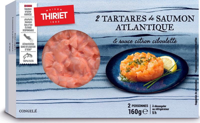 Maison Thiriet's Atlantic Salmon Tartars are easy to prepare straight from the freezer. Just thaw them in your refrigerator for a couple of hours before serving. This dish can be enjoyed as a standalone meal or as an elegant starter. For a unique twist, you can also serve it on a bed of fresh mixed greens or alongside a crisp, French baguette.