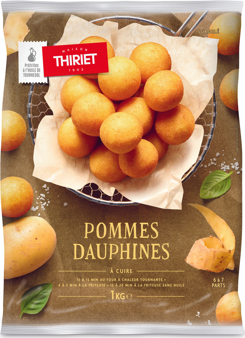 Savor the taste of French cuisine with Maison Thiriet's Dauphine Potatoes. This traditional French dish is made with 52% mashed potatoes and seasoned with just the right balance of spices. The potatoes are coated with a delicate mixture of whole eggs and wheat flour, then fried to perfection in sunflower oil. The result is a mouth-watering combination of crispy exterior and fluffy interior. As a bonus, our Dauphine Potatoes are frozen, ensuring their freshness until you're ready to cook them. They are also free from artificial flavors and colors, making them a healthful addition to your meals.